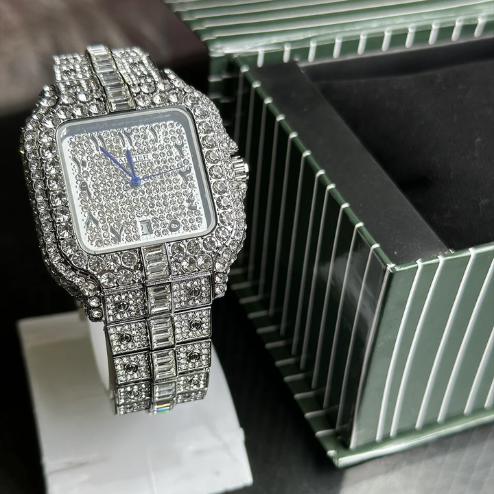 Raise eyebrows with the Luxury Square Diamond Quartz Watch from men, a daring combination of style and sporting. This watch was crafted with a stainless steel strap and fully iced-out dial to portray power, class and high quality craftsmanship.