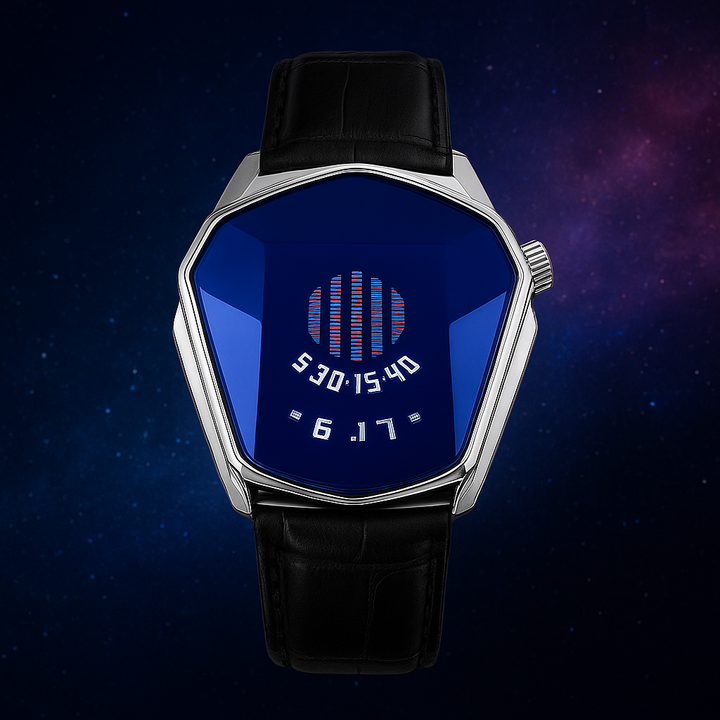 Luxury Men Wristwatch is made to appeal to men who appreciate style, accuracy and a classy look. Its bold gold and blue 3D glass dial leaves a strong impression both on the business and casual wear.