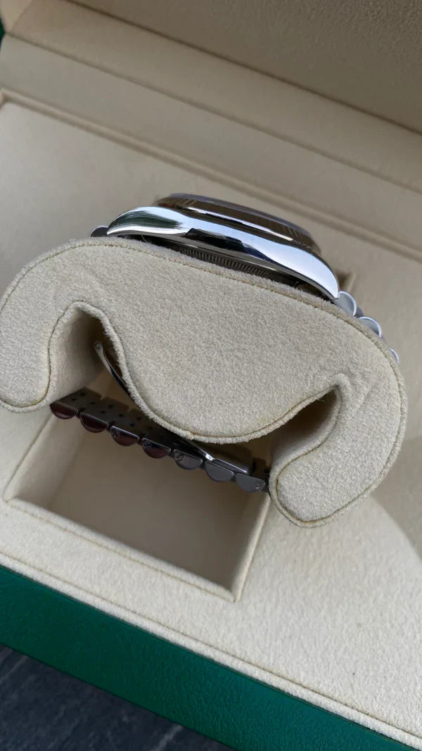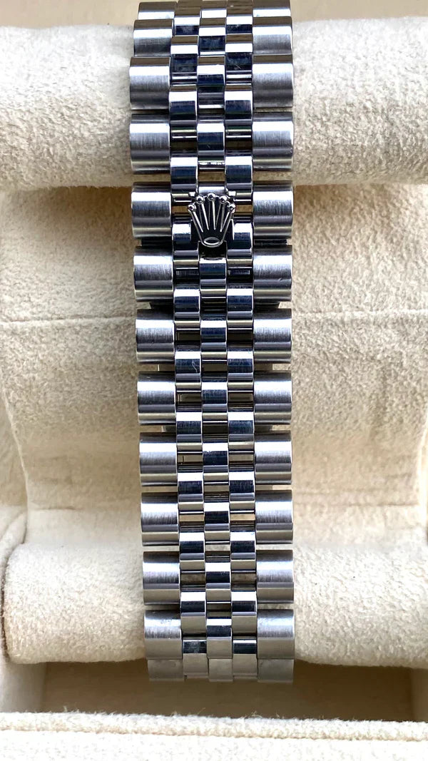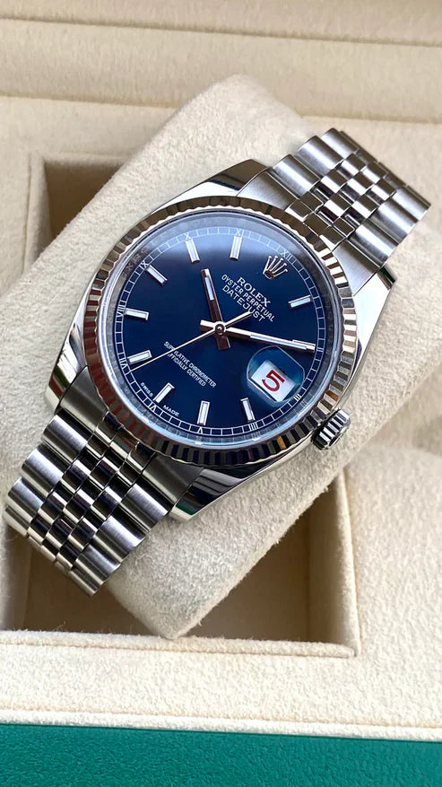 The stunning datejust 36mm steel and 18k white gold fluted bezel with a rare blue dial